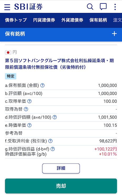 こんにちは。わたしの投資の話です。趣味です。ご興味のある方は読んでいただけたら嬉しいです。とうとう売ってしまったもの。・・2022年末に購入した年利 1.65%の社債。1口分、100万円を持っていたんですが売却しました。100万円が↓↓↓9...