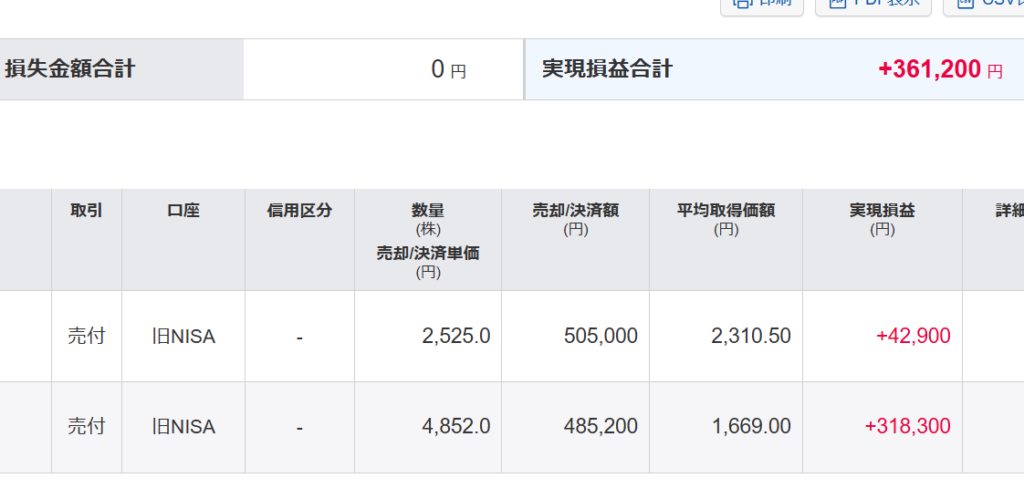 5年間持っていた2社の株。